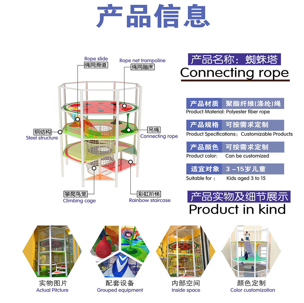 :樂(lè)季 型號(hào):LJ-QC004 規(guī)格: 根據(jù)場(chǎng)地定制 材質(zhì):粗繩,不銹鋼管等 工藝:粗繩牢固,采用高強(qiáng)度的滌綸無(wú)結(jié)網(wǎng)打造而成 顏色:根據(jù)項(xiàng)目需求定制 使用場(chǎng)地:景區(qū)七彩樹(shù),公園七彩樹(shù),游樂(lè)場(chǎng)七彩樹(shù),商場(chǎng)七彩樹(shù)等 運(yùn)輸方式: 家的運(yùn)輸戰(zhàn)略合作單位,采取專線和復(fù)線的運(yùn)輸組合方式降低運(yùn)輸成本,專業(yè)裝車設(shè)備,專人監(jiān)管,確保發(fā)貨準(zhǔn)確,裝貨合理。 以新時(shí)代室內(nèi)兒童樂(lè)園的設(shè)計(jì)為依托,創(chuàng)意搭配其它兒童游樂(lè)設(shè)備,彩虹迷宮使游戲樂(lè)園的內(nèi)容更加豐富,增加了樂(lè)園的趣味性、新穎性。寓教于樂(lè),在游樂(lè)中學(xué)習(xí), 親子互動(dòng)是現(xiàn)代家待的兒童樂(lè)園模式,彩虹繩網(wǎng)游樂(lè)園在兒童游樂(lè)產(chǎn)業(yè)中引領(lǐng)潮流,其發(fā)展前景十分廣闊。