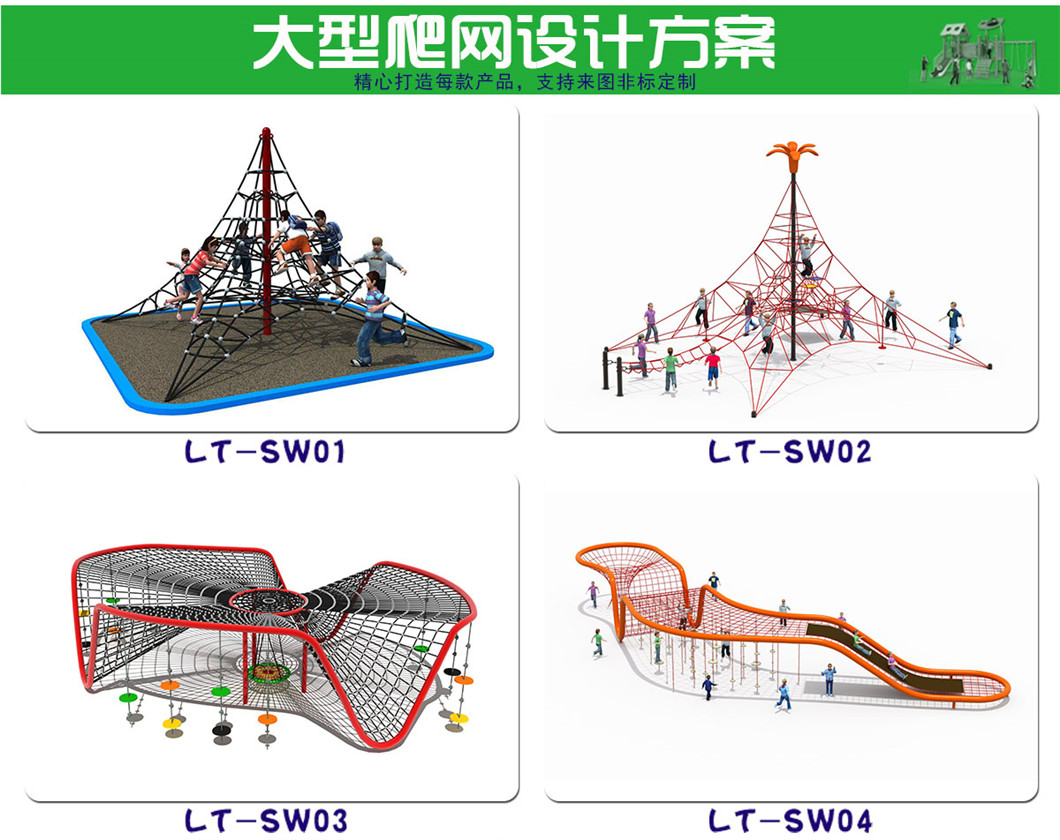:樂季 型號:LJ-SW001 規(guī)格:根據(jù)場地定制 材質(zhì):常用材料有304不銹鋼、鍍鋅管、工程塑料、、進口木材、PE板,網(wǎng)繩等等 工藝: 顏色:按項目要求定制 使用場地:景區(qū)、公園、酒店、學(xué)校、小區(qū)等 運輸方式:廠家的運輸戰(zhàn)略合作單位,采取專線和復(fù)線運輸?shù)慕M合方式降低運輸成本,專業(yè)裝車設(shè)備,專人監(jiān)管,確保發(fā)貨準確,裝貨合理。 大型繩網(wǎng)是模仿攀爬而設(shè)計的攀爬類繩網(wǎng)游樂設(shè)備,指一個人用雙腳和雙手在攀爬網(wǎng)向上運動。樂季生產(chǎn)的大型繩網(wǎng),在有限的空間內(nèi)創(chuàng)造出無限的吸引力。