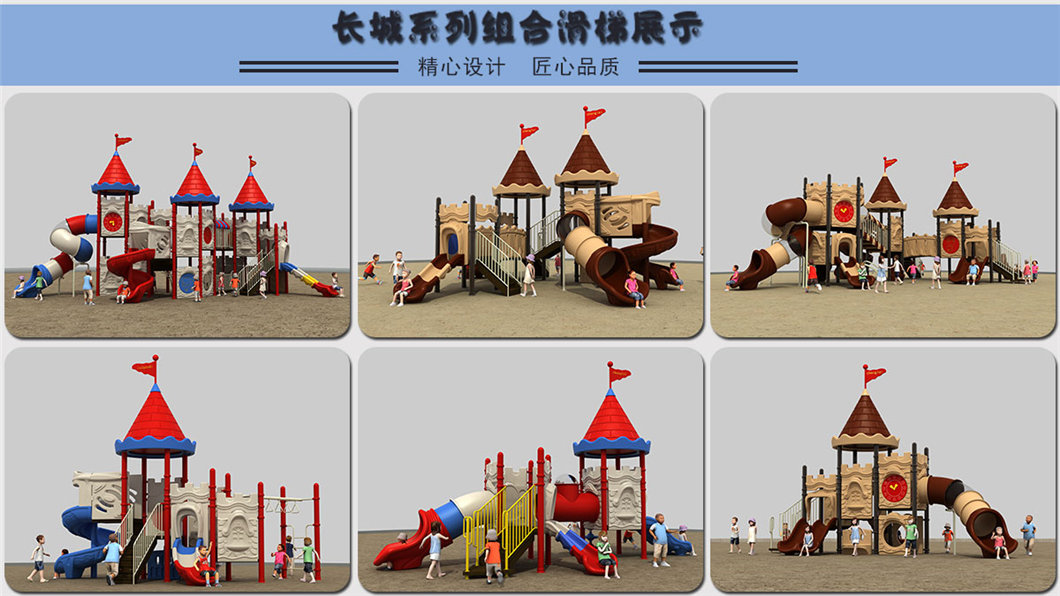 大型塑料組合滑梯廠家,戶外滑梯的根據(jù)滑梯的主立柱尺寸的大小不同分為這么幾種:“114,89,76,36”,這些單位都是毫米為單位,在戶外滑梯一般都使用114立柱的管子,也有部分滑梯使用76的,76管是迷你型的,小巧又好看,適合于3.4歲小朋友游玩。組合滑梯它集健身娛樂為一體,根據(jù)小朋友的興趣及愛好精心設(shè)計各種不同樣式,(幼兒園滑梯)是一座新型,綜合性很強的兒童樂園。