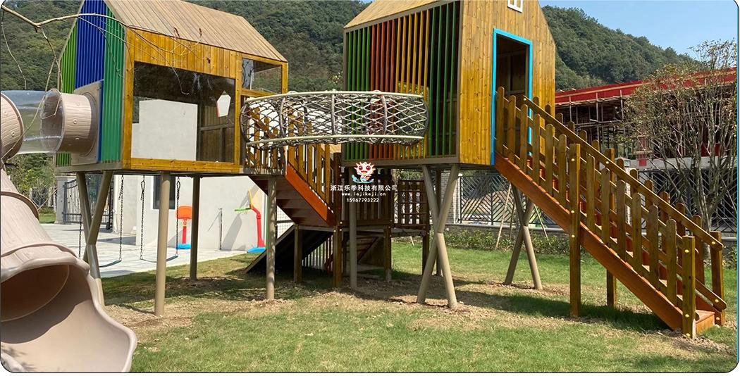 富陽方家井幼兒園項(xiàng)目包含木屋,攀巖,連廊,繩網(wǎng)攀爬等戶外游樂設(shè)備項(xiàng)目。