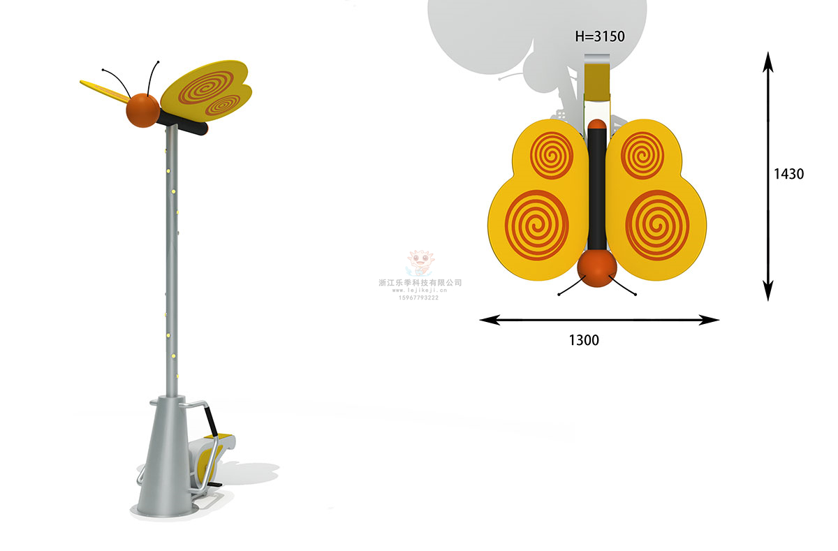 外觀:蝴蝶外觀,踩動腳踏板蝴蝶翅膀會上下扇動,并且支撐蝴蝶的柱子會亮起七彩光。