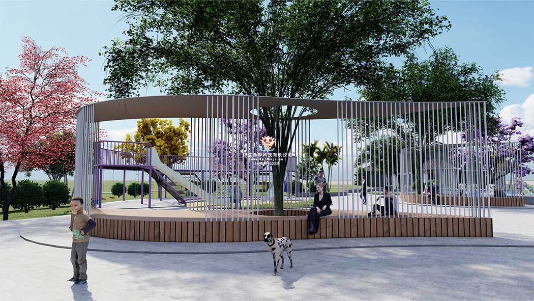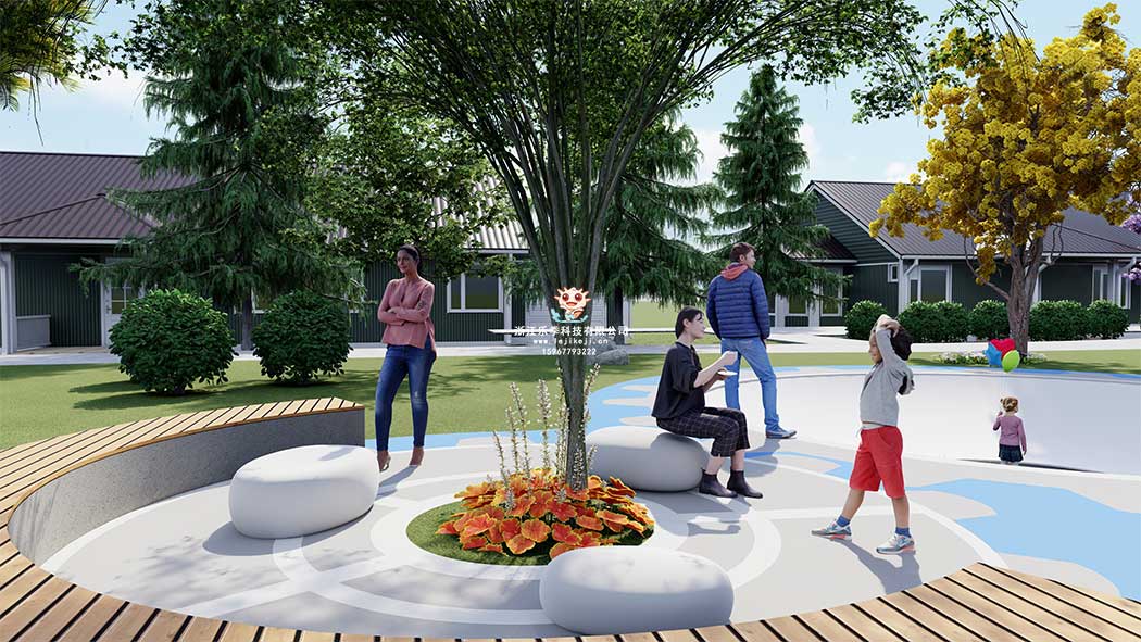 休息區(qū)也是戶外游樂場必不可少的部分。休息區(qū)的設(shè)計(jì),有利于為帶孩子的家長提供坐的場地,也為孩子提供休息場地,放松身心,積蓄力量。