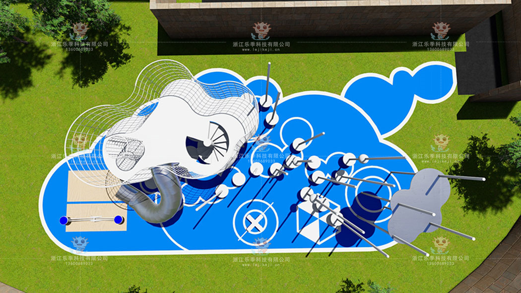 3、“藍(lán)天白云”戶外游樂(lè)設(shè)施內(nèi)容豐富,有多個(gè)項(xiàng)目,集步行、跑步、跳躍、平衡、投擲、攀爬、鉆探等多種運(yùn)動(dòng)功能于一體,場(chǎng)地中間和終點(diǎn)合理布置了各種形式和功能的游樂(lè)設(shè)施,在這里,我們可以探索另一個(gè)有趣的:一個(gè)巨大的網(wǎng)架,一個(gè)可供一群兒童同時(shí)使用的螺旋滑梯。從遠(yuǎn)處看,我們可以看到這個(gè)地區(qū)激發(fā)出了不同年齡的孩子們?nèi)ヌ剿鞯奶煨浴?/span>