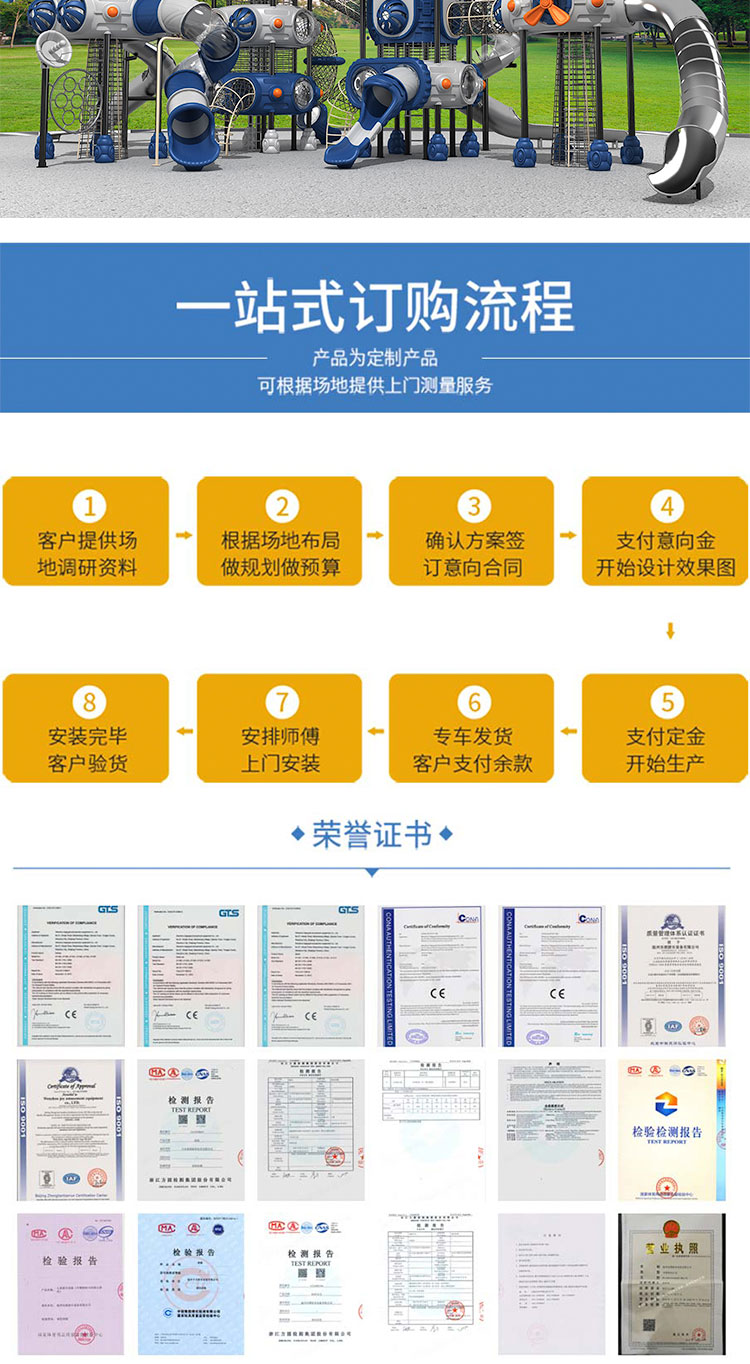 擁有5000平米工廠車間,主要生產(chǎn)組合滑梯、健身器材、攀爬設(shè)備、戲水產(chǎn)品。