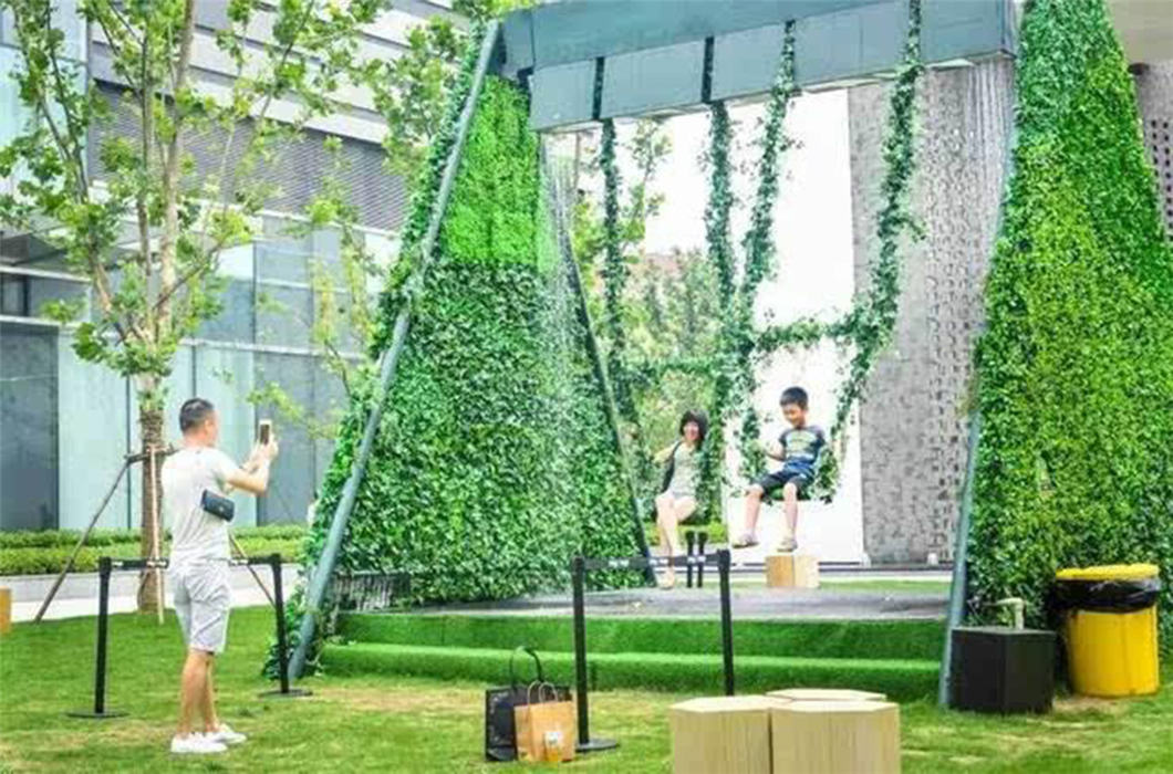 2、室外樂園可設(shè)單、雙或多人秋千,通過圓形或S形等異形布置,營(yíng)造豐富的秋千視野,這樣可以帶給游人更多的秋千氛圍感,在我們的建設(shè)中,有更多采用此種布置的秋千樂園,獲得明顯的好評(píng),受到廣大游人群體的喜愛,還有一些整木秋千,被賦予一定的團(tuán)隊(duì)拓展功能。