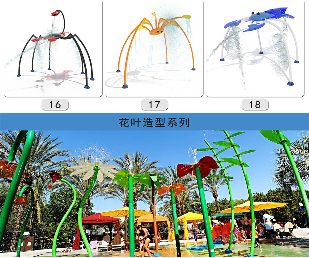 花蕾噴水、噴水花蕾、噴水鉛筆、噴水彩菇、青蛙滑梯、水槍、戲水水槍、水炮、戲水蹺蹺板、噴水蹺蹺板、噴水?dāng)?shù)字玩具、噴水青蛙、噴水鱷魚、噴水海馬、大象滑梯、蘋果屋、噴水彩柱、親子烏龜、噴水刺猬、噴水鯨魚、噴水袋鼠、噴水貝殼、自吸式水槍、彩虹滑梯、魚蟹噴水組合、噴水章魚、噴水海豚、荷花噴水、噴水青蛙、噴水花灑、戲水小品、浮萍等等水上設(shè)備。